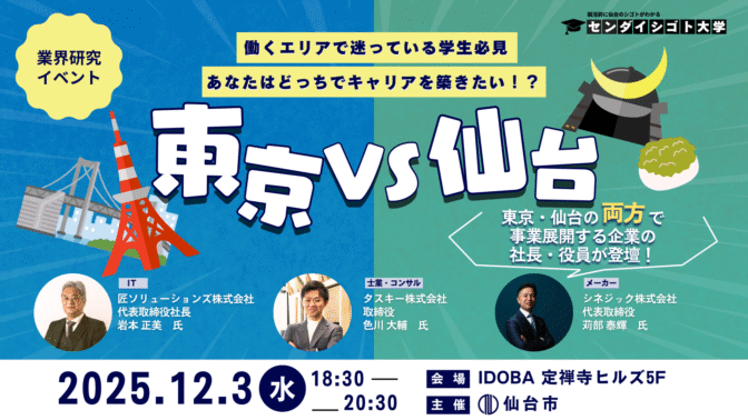 仙台の企業情報や、イベント情報、仙台で働く社員のインタビューなどの