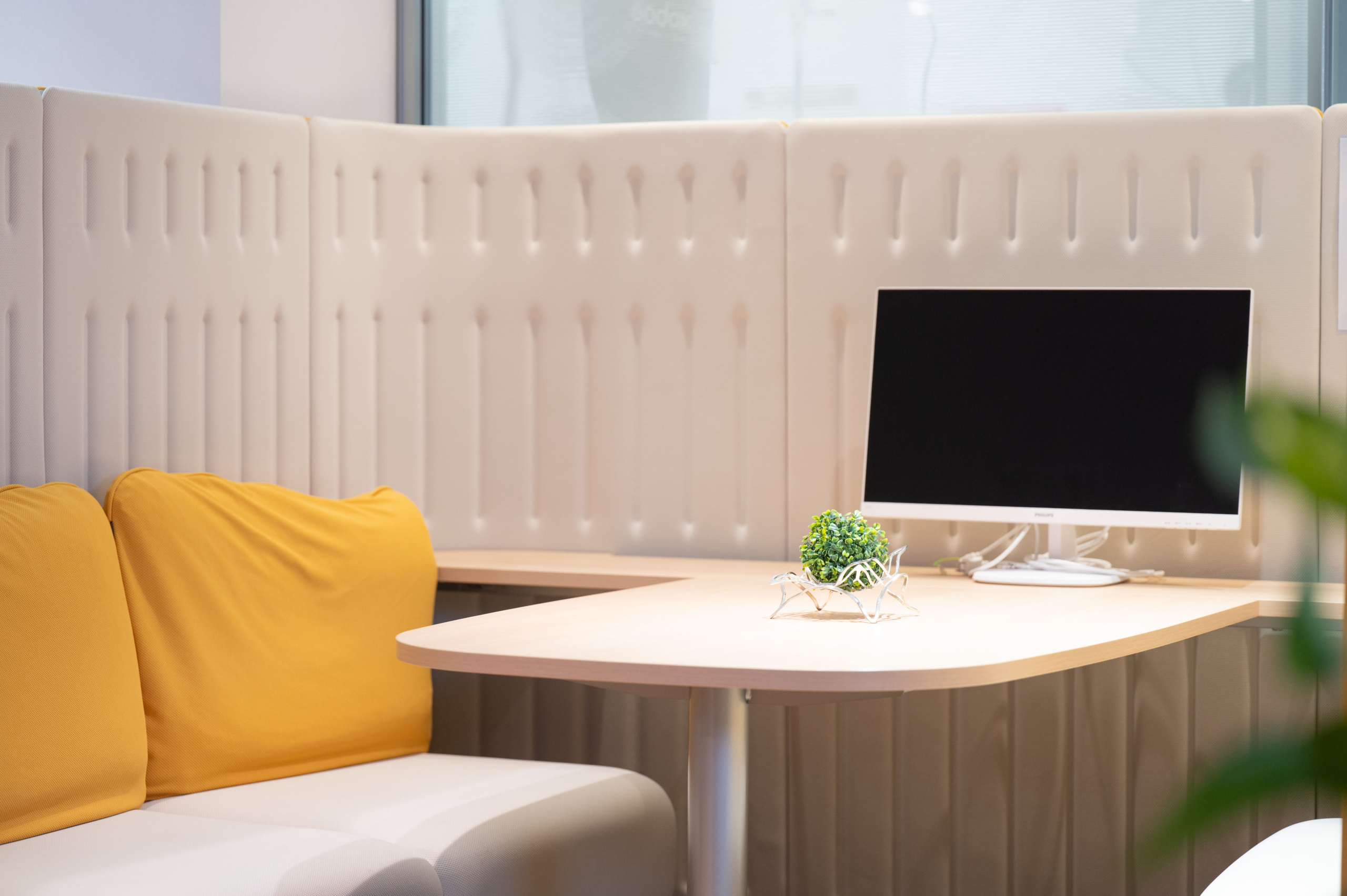 会社は開放的な空間です。会社はフリーアドレスといって好きな席で仕事をすることができるので、場所や気分を変えて業務することができます。