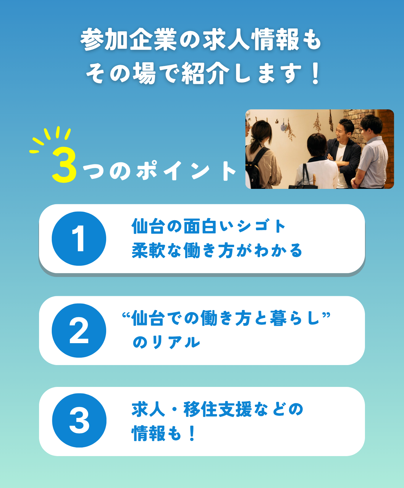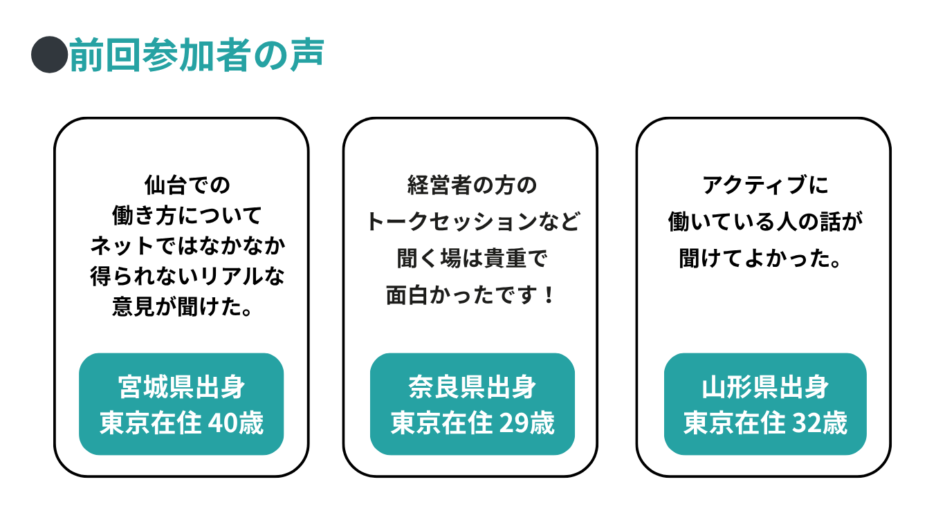 “アクティブに働き、ローカルに暮らす”を叶える「仙台」という選択肢。今すぐじゃないんだよね…というそこの貴方も。ぜひ気軽に、仕事終わりに覗いてみませんか?