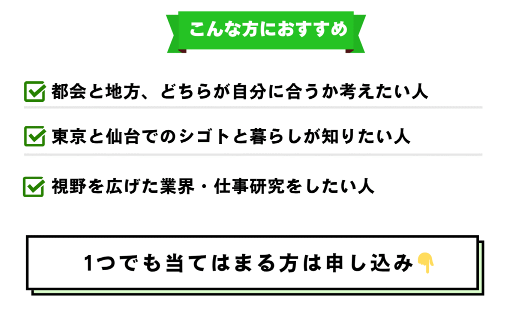 毎月開催!学生~若手社会人がシゴトを学ぶ「センダイシゴト大学~東京VS仙台×シゴト編~」