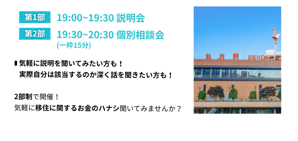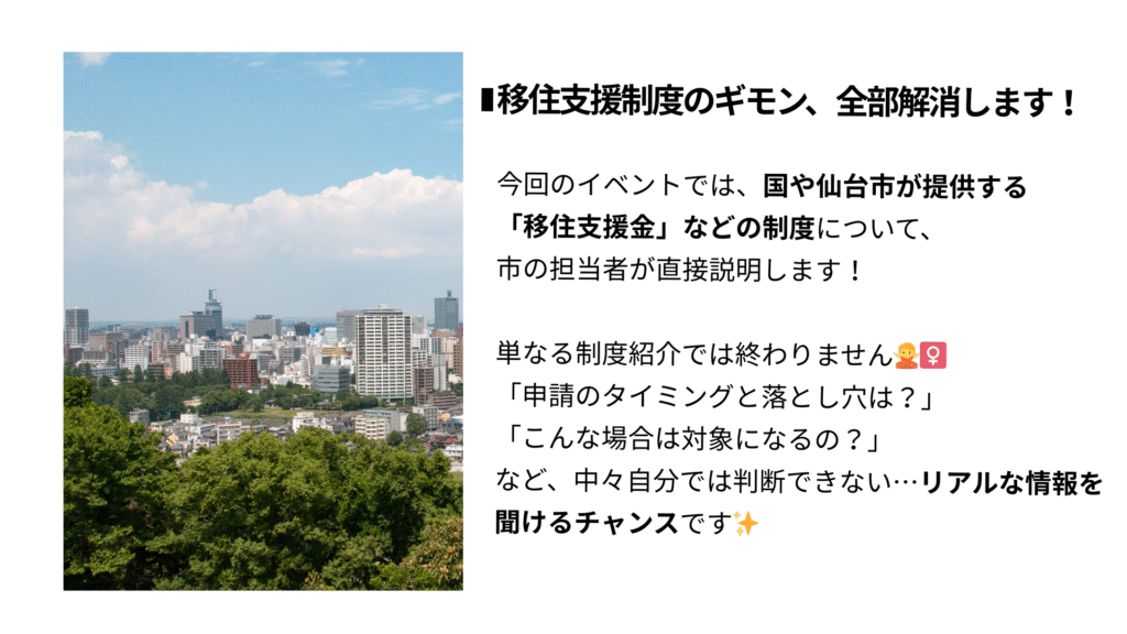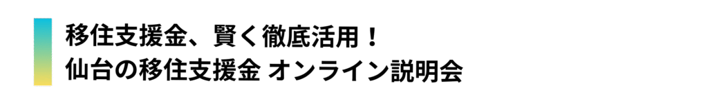 東京圏からの移住で100万円!?12名様限定個別相談会も開催!仙台の移住支援金オンライン説明会