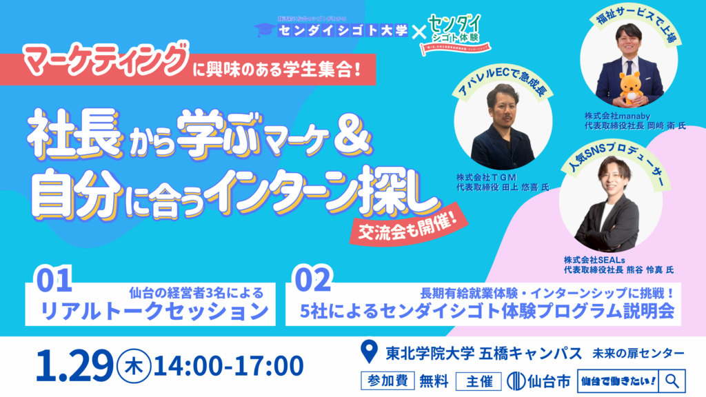 センダイシゴト大学✕センダイシゴト体験コラボイベント!!テーマは「マーケティング✕シゴト」
