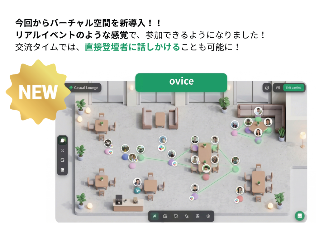 番組中にリアルタイムで出演者に質問も可能!バーチャル空間で登壇者と直接お話できる交流タイムも!