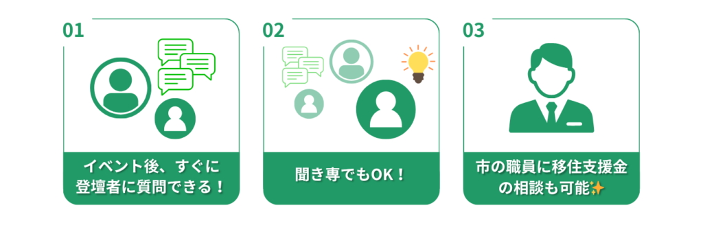 また、交流タイムでは自由に企業・コンシェルジュとお話しいただけます。