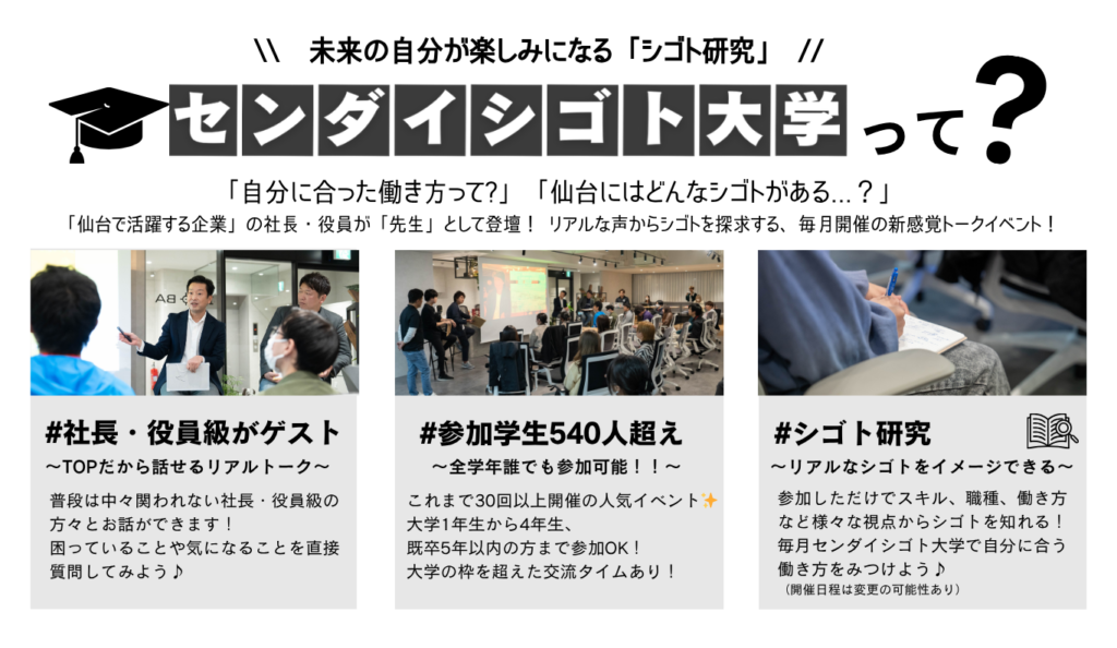 毎月開催!学生・若手社会人がシゴトを学ぶ「センダイシゴト大学 ~企画と営業~」