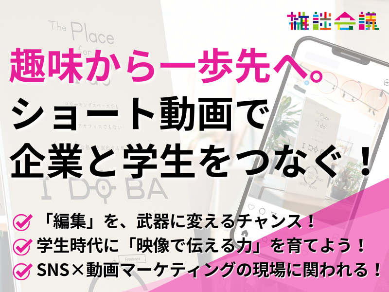 【仙台】SNSマーケティングが学べる有給インターン株式会社雑談会議地域企業や自治体、学生、フリーランスなど、さまざまな人々と「共創」しながら、中小企業が抱える課題解決を目指し事業を展開しています。