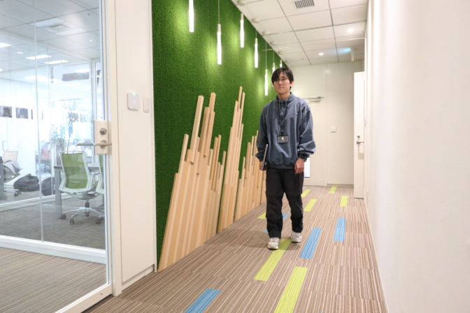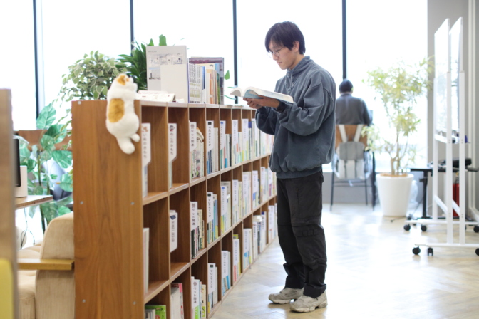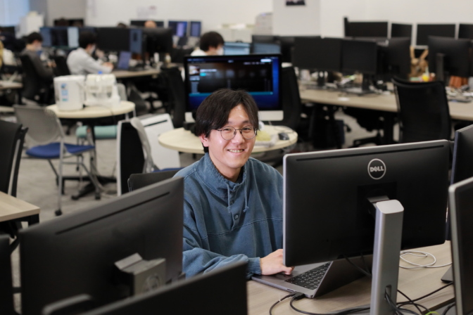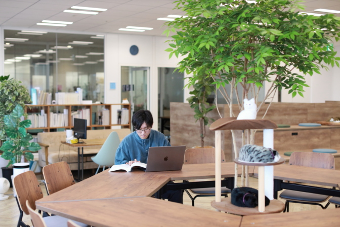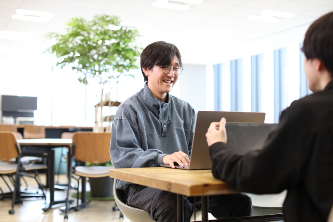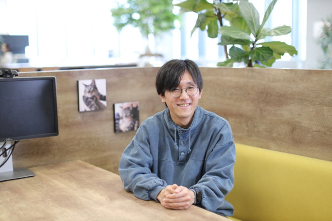 IT専門の転職サイトで今の会社に出会い、カジュアル面談での雰囲気の良さと、「自社開発」をしている点が決め手となりました。また、社内ブログを見て、自分たちで業務効率化ツールを作るような動きがあり、チャレンジしやすい環境だと感じたのも理由の一つ。実際、社内にある図書コーナーの貸し出しのシステムや、フリーアドレスの社員がどこに座っているかなどが分かるシステムなども、社員が作ったものなんです。