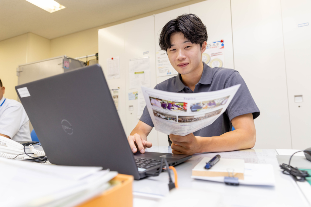 就活を始めたのが大学4年の春と、かなり遅めでした。教員免許取得のために教職課程を取っていて、同時期に教育実習も受けなければならなかったので、企業の入社試験と重なって大変でした。後になればなるほど、複数の企業で面接が重なってくるので、就活はできるだけ早めにスタートした方がいいです。業界や業種について分からないことも多くありますが、私の場合は「地元企業」「社会貢献性の高さ」という軸で就職先を選びました。自分の軸を大切にして進めていけば、納得のいく選択ができるのではないかと思います。