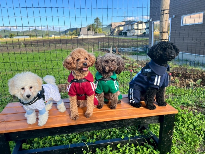 飼っているトイプードルと戯れてから、家を出ます。