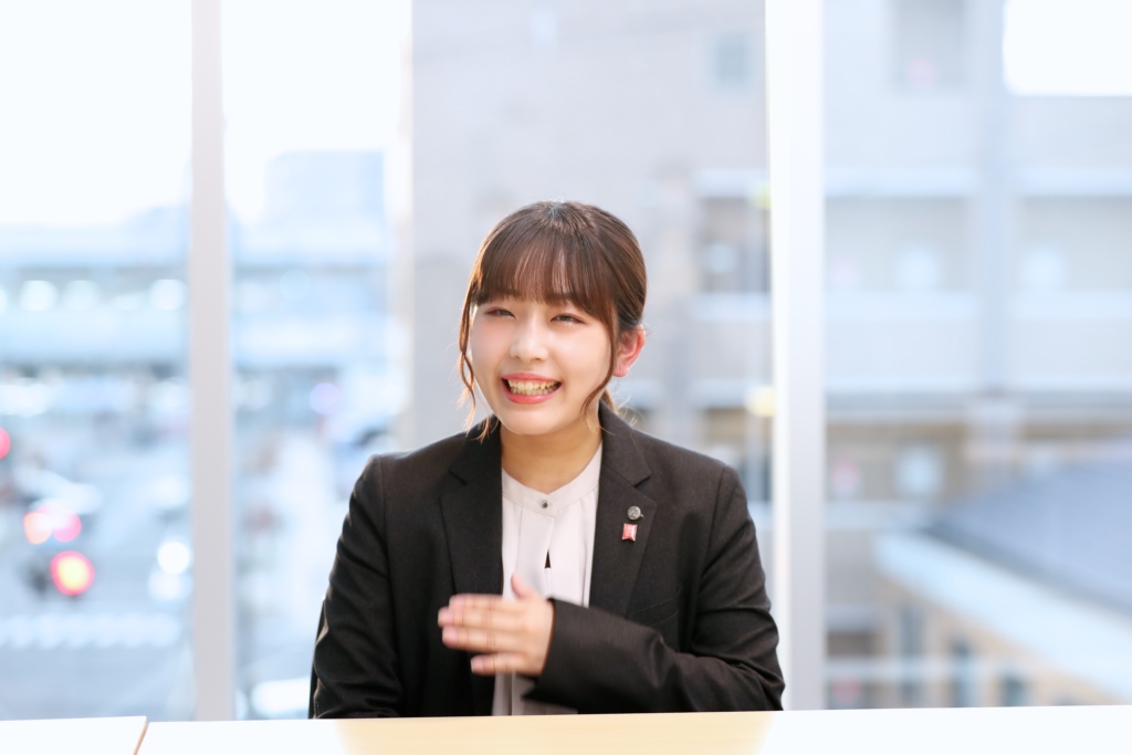 ちょうどコロナ禍でオンライン選考に切り替わったタイミングで、なかなか積極的に就活できずにいました。いざ就活を始めても、書類選考で不採用になり、「ああもうだめだ。やめよう」と思ってしまって、挫折して2社しか受けませんでした(笑)。私は自己PRが苦手なので、学校の友人に「私ってどういう人?」と質問をして、そこで友人を巻き込んで自己分析を行い、就活に向き合ったりしていました。その時に、私の強みは「サポート側に回る」ということで、弱点としては「人前にあまり出たがらない」でしたが、この会社に入社して、人前にどんどん出る挑戦の機会をいただいています。徐々にではありますが、弱点も克服できてきていると感じています。