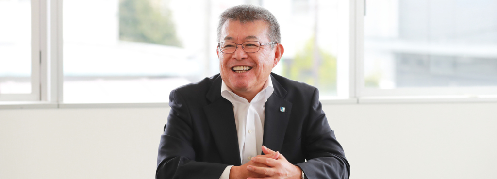 「人」が社にとっての大きな財産だという江馬社長。「学生さんには、ぜひ今のうちにいろいろな経験を積んでほしいですね。旅行、アルバイト、勉強。そして、ある程度壁にぶつかって、自分の気づきにしていただけたらと思います」と笑顔をのぞかせました。