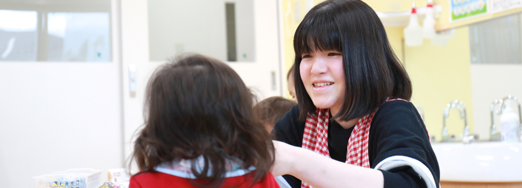 担当するお子さんの年齢によってかかわり方は違うのですが、0歳児と接する際は、こちらから働きかけたことに表情で返ってくるとうれしいですね。あとは、体の成長に従って活動の幅が増えてくると、やりがいを感じます。